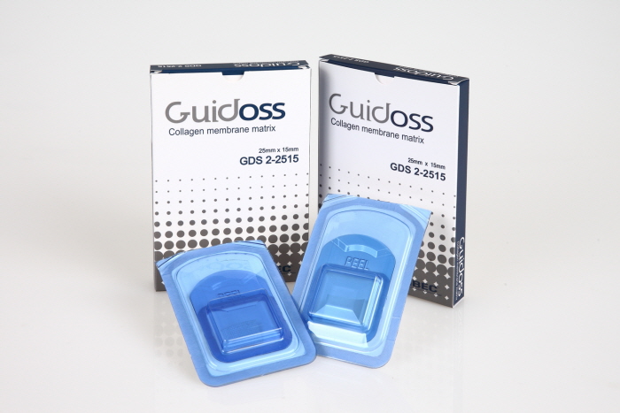 GuidOss는 다공성 섬유구조로 혈액 및 영양분의 투과가 용이하고, 구강노출 시 거의 염증 없이 세균의 침투를 막고 치조골, 상피 및 결체조직 재생에 도움을 줍니다.